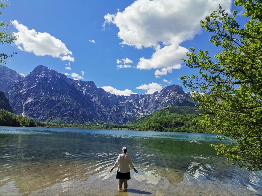 Yoga am See. Wir sind unterwegs im Salzkammergut und genießen das beeindruckende Panorama der Berge und Seen. Jeden Tag wandern wir zu einem anderen Gebirgssee. Im Rucksack die Yogamatte, die wir am See und an ausgewählten Kraftplätzen ausrollen und in die Yogapraxis eintauchen.